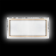Example: a 10x20 canvas with a frame = 11.5 x 21.5 inches total.